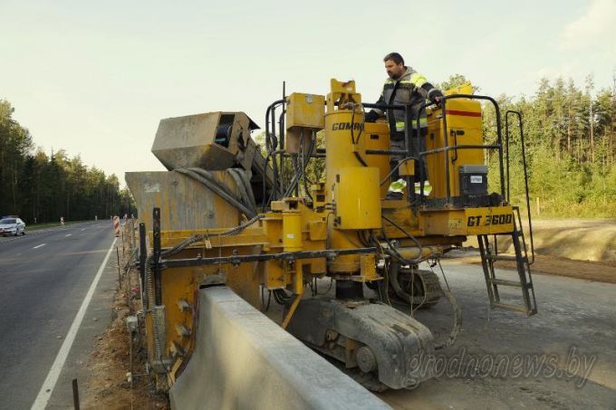 Магистраль без опасности. На щучинском участке реконструируемой трассы М6 впервые в Беларуси устраивают монолитные бетонные ограждения на разделительной полосе