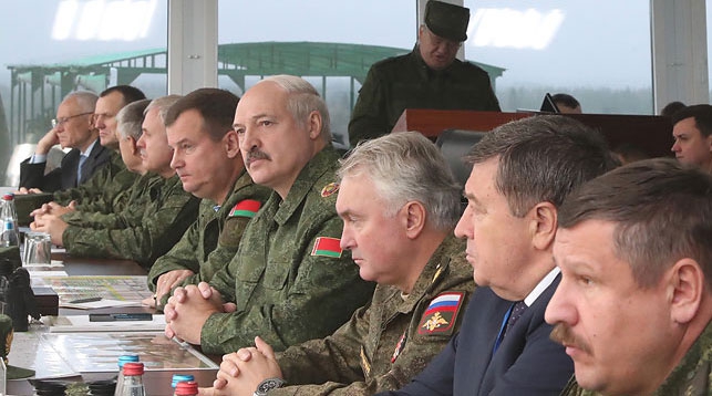 Хотите узнать больше? Президент Беларуси, Главнокомандующий Вооруженными Силами Александр Лукашенко наблюдает со смотровой площадки за ходом совместного стратегического
