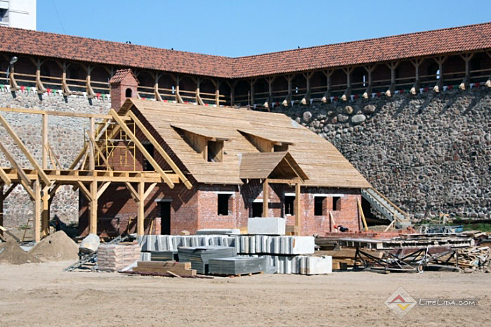 Продолжается реконструкция Лидского замка, окончание которой запланировано на 2014 год. На данный момент основные работы ведутся над возведением построек внутри замка. Предлагаем читателям "LL" небольшой фоторепортаж с места событий.