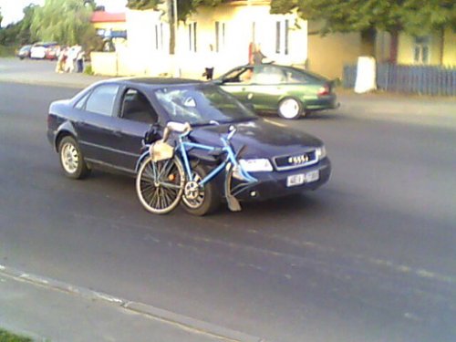 Около 20 часов возле магазина "Чайка" произошла авария с участием велосипедиста и л/а "Ауди", сообщает пользователь STELS_100. Со слов очевидцев в данном ДТП виноваты оба участника происшествия. Велосипедист въехал на перекресток, когда зеленый индикатор светофора сменялся красным, а автомобиль "Ауди" ехал из центра города по левой полосе, обгоняя транспорт, стоящий в среднем ряду, который только начал движение. Велосипедиста, чудом не попавшего под колеса автомобиля, с травмами увезла машина скорой помощи.