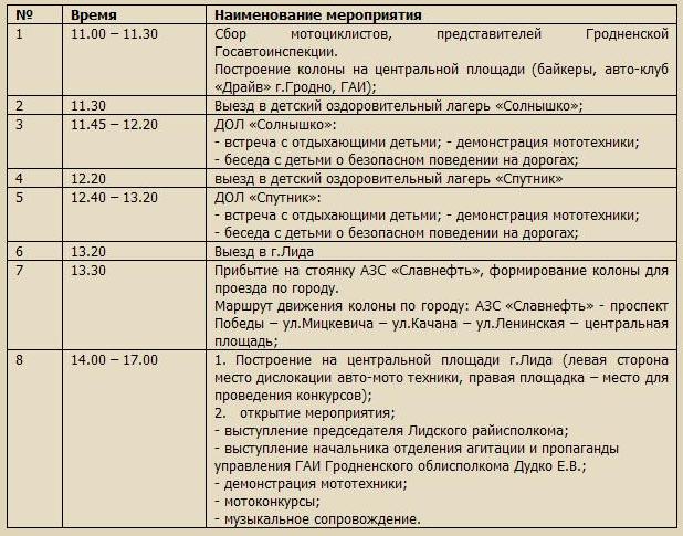 30 июля в Лидском районе будет проходить совместная акция Гродненской Госавтоинспекции, Межрегионального общественного объединения «Мотоциклисты Гродненщины» и отдела по делам молодежи Лидского райисполкома «В стиле безопасного движения». Представляем вашему вниманию подробный план этого мероприятия.