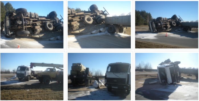 Сегодня, 17 марта, около 14.10 в районе деревни Доржи на круговом движении опрокинулся МАЗ. Водитель грузовика не правильно выбрал скорость движения, не справился с управлением, груз потянуло в правую сторону, в результате чего груженую мешками с песком машину водитель не удержал на проезжей части дороги. В 16 часов в больнице при проведении медицинского освидетельствования прибор «Алкотест» показал, что у водителя в выдыхаемом воздухе содержится 0,5 промилле алкоголя.