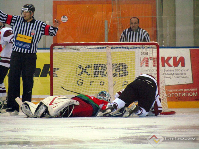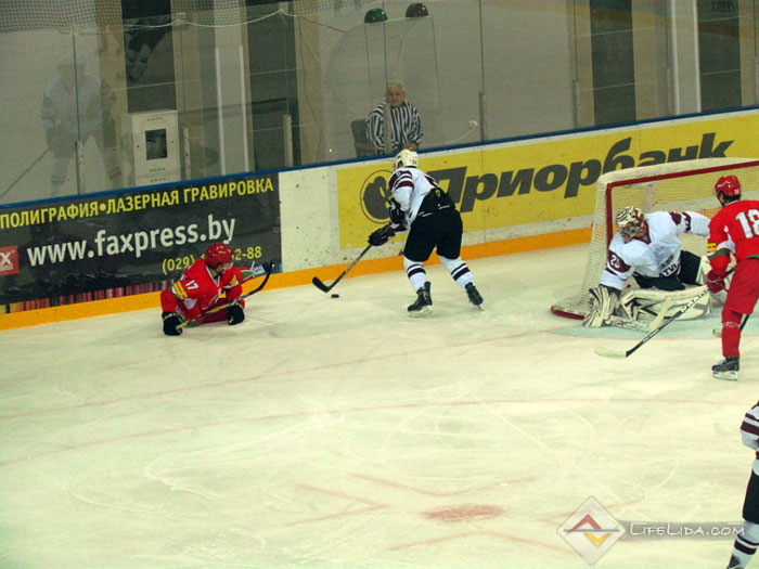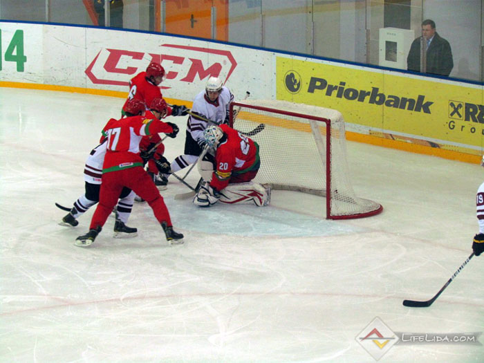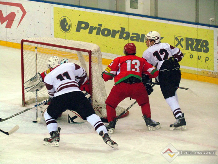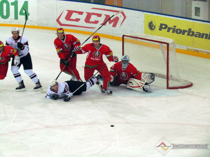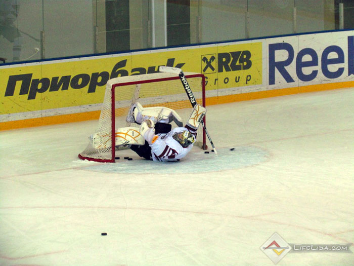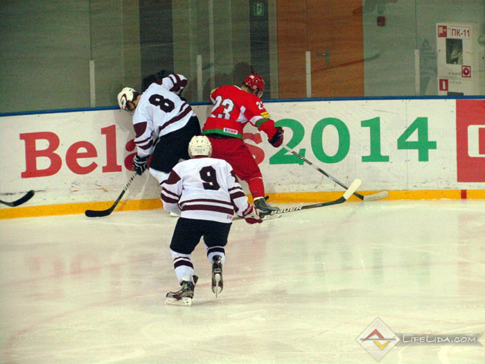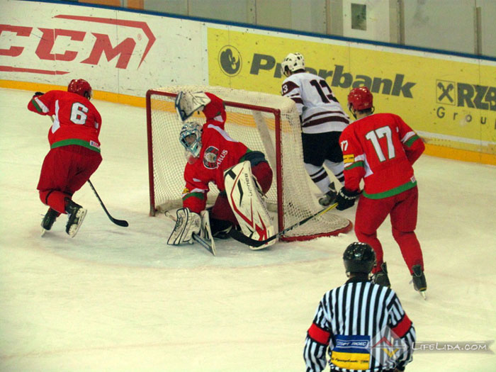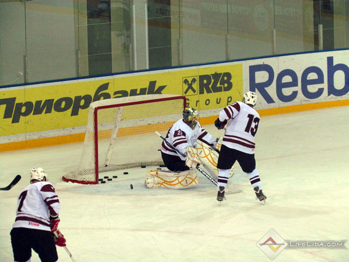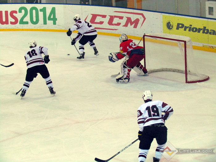 Шайбы: 1:0 - Паулс Ходько (большинство) (Никита Евпаловс, Регнарс Калиновскис) 22:51, 1:1 - Евгений Хузеев (Алексей Скабелка, Антон Мохарев) 25:44, 1:2 - Станислав Лопачук (Артур Абмётка, Максим Парфеевец) 29:33, 2:2 - Паулс Звирбулис (Эдгарс Клавиньш, Давис Страупе) 59:16, 2:3 - Максим Парфеевец (большинство) (Станислав Лопачук, Евгений Леонов) 61:04.