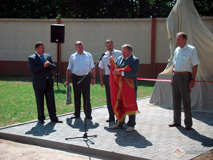 "Минский моторный завод" уже на протяжении трёх лет сотрудничает с нашим предприятием. Об этом поведал технический директор производственного отделения, Анушкевич Игорь Константинович. Это сотрудничество расширяет перспективы и открывает новые горизонты для предприятий. На открытии памятника также присутствовал бывший директор "Лидского литейно-механического завода", Шишкин Александр Якимович, который выступил с интересным предложением о создании на заводе музея трудовой славы. Кроме идеи, Александр Якимович подарил и первый экспонат музея - знамёна, которые завод получил за отличную работу. Нынешний директор ОАО "Лидский литейно-механический завод", Трубицкий Роман Эдуардович, поблагодарил за подарок и обещал осуществить предложение к следующему профессиональному празднику.