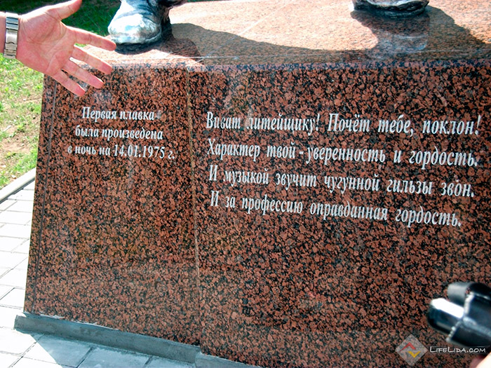 Каждый год в третье воскресенье июля в нашей стране отмечается День металлурга. В преддверии профессионального праздника, 13 июля, лидские металлурги и гости города собрались возле ОАО "Лидский литейно-механический завод" для торжественного открытия памятника литейщику. Эта скульптура является подарком работникам завода, данью уважения и признательности за преданность своей профессии, самоотверженный труд и неоценимый вклад в развитие металлургической промышленности.
