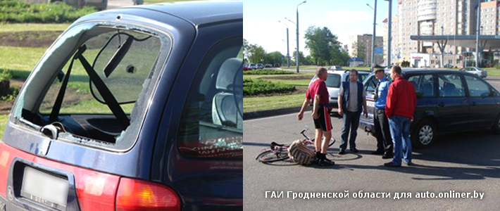 В Гродно велосипедист головой разбил стекло в Seat