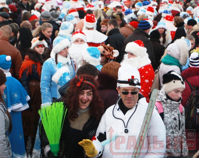 300 Дедов Морозов и Снегурочек зажгли новогоднюю иллюминацию в Гродно