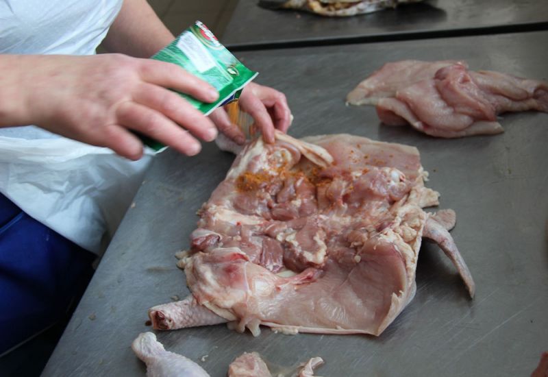 Разделанную курицу посолить и поперчить, на полчаса поставить в холодильник.