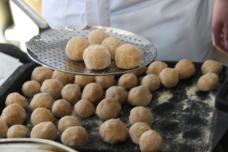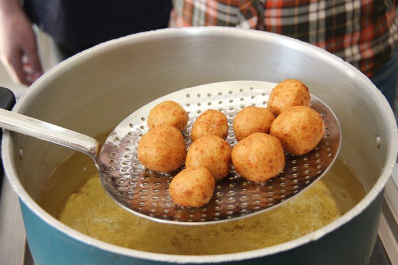 Технология: картофель натереть на мелкой терке вместе с луковицей, отжать с помощью полотняного мешочка сок, в полученную массу добавить соль по вкусу. Из картофельного фарша скатать руками шарики величиной с грецкий орех, предварительно вложив внутрь кусочек ветчины или сыра. Запанировать цибрики в сухарях и жарить во фритюре до золотистой корочки 3-5 минут. Вынимаем шумовкой, выкладываем на бумажное полотенце, чтобы стек лишний жир. Подаем со сметаной или как гарнир. Приятного аппетита!