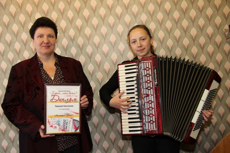 Честь Ошмянщины защищали трое юных исполнителей на духовых клавишных инструментах. Аккордеонистка старшей группы Алена Жульпо (руководитель Наталья Леонидовна Мицевич, на снимке слева) завоевала диплом второй степени. Ученик Юрия Чеславовича Брашко юный баянист Константин Зарецкий не подвел и вновь попал в тройку лучших, став дипломантом третьей степени. В средней возрастной группе номинации «Баян» грамоту за успешное выступление получила Ольга Дыско (руководитель Марина Вацлавовна Лопух, на снимке справа). С учетом, что такие грамоты достались лишь тем, кто чуть-чуть недотянул до призовой тройки, это вполне достойный результат юной участницы.