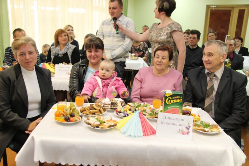 День семьи получился по-настоящему теплым, добрым и искренним. И хотя гости чувствовали себя немного скованно, разрядить обстановку помогали музыкальные номера в исполнении Татьяны Макарец, Алены Ранцевой, народного ансамбля семейной песни «Граўжанцы”, Оксаны Юркантович и Дины Петкович. Созданию семейной дружной атмосферы способствовало чаепитие с большим разнообразием вкусностей. Каждому члену семейной династии был вручен подарочный сертификат и цветы.