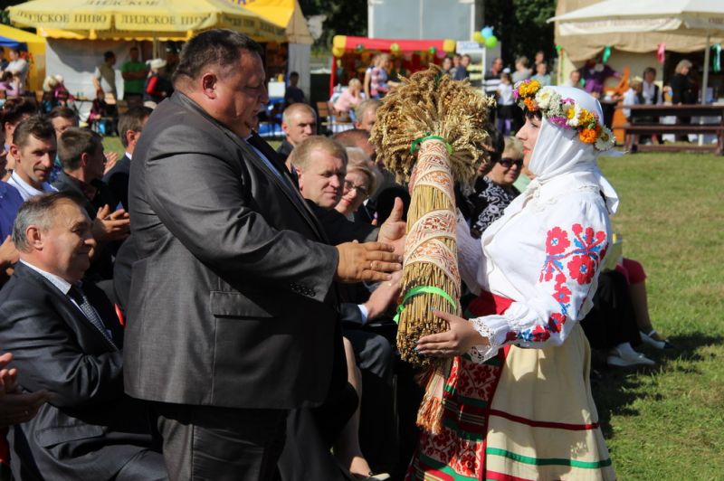 Жнеі ўрачыста ўручылі дажыначныя снапы кіраўнікам гаспадарак Ашмяншчыны, а раённы дажыначны сноп прыняў старшыня райвыканкама Міраслаў Эдмундавіч Сарасек. Кіраўнік раёна павіншаваў усіх з заканчэннем жніва. М.Э. Сарасек узнагародзіў пераможцаў спаборніцтва сярод камбайнераў і вадзіцеляў.