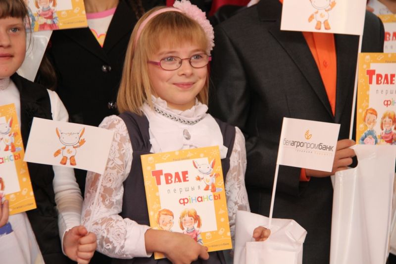 — У дзяцей узнікае шмат пытанняў наконт таго, адкуль бяруцца грошы і дзе яны захоўваюцца, што такое “фінансы”, “плацёжная картка”, якую яны бачылі ў бацькоў. На гэтыя і шматлікія іншыя пытанні можна атрымаць адказы ў новай брашуры, якая выдадзена нашым банкам. Хочацца сказаць, што “Белаграпрамбанк” невыпадкова з’яўляецца ўдзельнікам гэтай акцыі. На працягу некалькіх гадоў ён праводзіць акцыі “Расти большой», “Подари ребенку футбольный мяч”, — расказала начальнік разлікова-касавага цэнтра №2 у г. Ашмяны, філіяла ААТ “Белаграпрамбанк” у г. Смаргонь Аляксандра Гаеўская.
