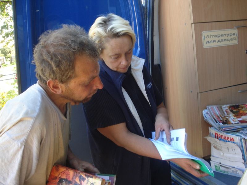 Галина Францевна Ониховская – библиотекарь центральной районной библиотеки, человек с большим опытом работы с сельским населением, в любую пору года спешит к своим читателям в самые отдаленные уголки Ошмянщины. «Библиотека на колесах» – так прозвали сельчане наш микроавтобус.