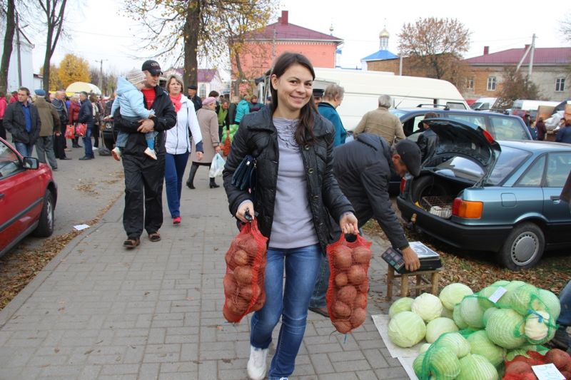 Торг распачаўся зранку. Гандляры толькі-толькі размясціліся на загадзя падрыхтаваных пляцоўках на вуліцы Першамайскай і плошчы 17 Верасня, як завіталі першыя пакупнікі – і кірмаш пайшоў.