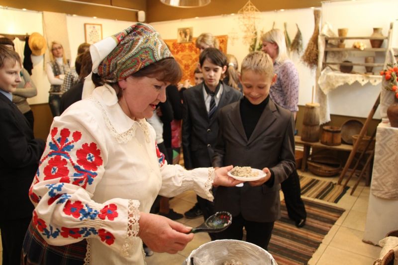 Асноўныя фрагменты сельскага жыцця паказвала гаспадыня – цётка Марыля, ролю якой выканала Марына Гендрыкаўна Горыд. На заканчэнне экскурсіі яна, узброіўшыся вілачнікам, па-майстэрску дастала з печы чыгунок з ячневай кашай і ўсім гасцям прапанавалі пачаставацца. Так што ўражанняў (і кашы з квашанай капустай) хапіла кожнаму.