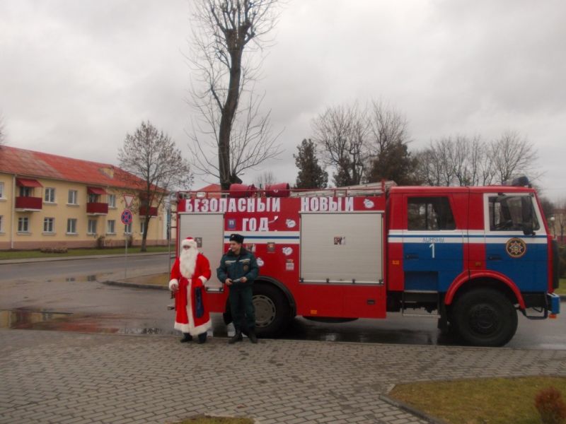 На завершающем этапе акции о соблюдении мер пожарной безопасности напомнил гражданам украшенный надписью «Безопасный Новый год!» пожарный автомобиль. Импровизированный Дед Мороз вместе с сотрудником РОЧС раздали жителям райцентра листовки с указанием основных причин возникновения пожаров и конфеты – символ приближающегося торжества.
