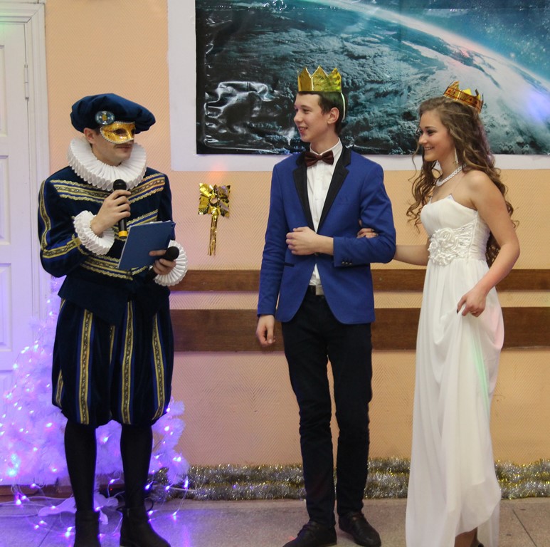 На балу выбрали короля и королеву. Для этого претенденты на корону прошли нелегкие испытания: юноши должны были сочинить шуточный указ, а девушкам предстояло сделать рекламу необычному предмету: устройству для отбивания мяса, подогревателю кружки с USB-интерфейсом, расшивателю, дыроколу, просекателю для монтажа железных конструкций и другим знакомым и незнакомым вещам. Оценивались чувство юмора, находчивость и остроумие. Победителей определяли по аплодисментам зрителей. И абсолютными финалистами стали десятиклассники СШ № 2 Дмитрий Менжинский и Энрика Гудас.