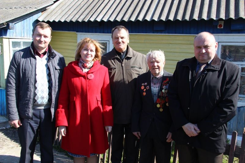 Поздравить ветеранов с юбилейной датой, пожелать им крепкого здоровья и вручить подарки накануне 70-летия Победы отправились депутат Палаты представителей Национального собрания Республики Беларусь Наталья Кучинская, депутат областного Совета депутатов Михаил Гружевский, председатель районного Совета депутатов Николай Квяткевич. К акции присоединились депутат областного Совета депутатов Александр Кавецкий, начальник отдела образования, спорта и туризма Светлана Барковская, водитель Станислав Римович
