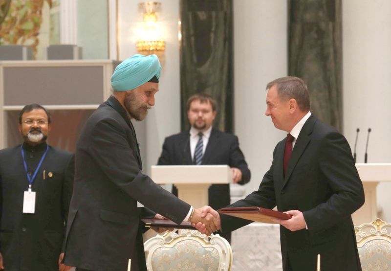 3 июня Беларусь и Индия подписали дорожную карту двустороннего сотрудничества. Министр иностранных дел Беларуси Владимир Макей и замглавы МИД Индии Навтеж Сингх Сарна в присутствии президентов двух стран обменялись документами, составляющими дорожную карту сотрудничества.