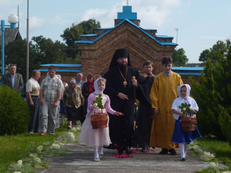 После литургии состоялся крестный ход, освящение и архипастырская молитва у трех могил: основателя храма протоиерея Владимира Юзьвюка, протоиерея Петра Глинского, красноармейца, участника Великой Отечественной войны, Ивана Кавецкого, погибшего в мае 1945 года в Гольшанах.