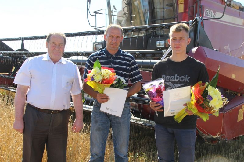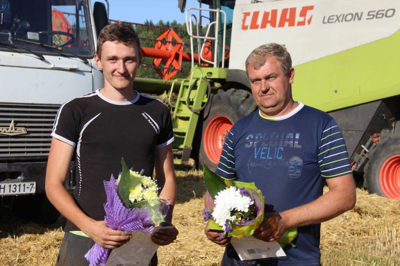 В СПК «Краковка» награждены двое работников. Среди комбайнеров, работающих на комбайнах с пропускной способностью от 10 до 12 килограммов включительно зерна в секунду, лидирует экипаж Валерия Амшея. С помощником Яном Садовским на комбайне КЗС-1218 за две недели с начала жатвы они намолотили 1253 тонны зерна (за вторую неделю уборки – 456 тонн). Не снижает обороты и водитель Юрий Карпинский – на автомашине МАЗ он перевез 3073 тонны (за вторую неделю – 1138).
