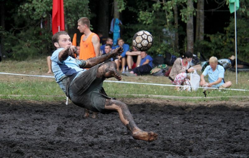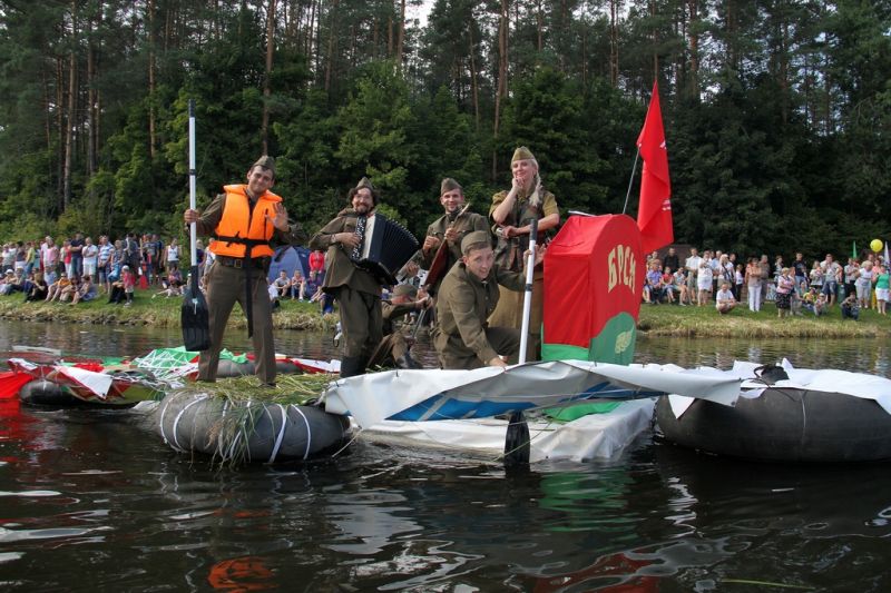 Фестиваль «Августовский канал в культуре трех народов» в конце августа уже стал своеобразной традицией нашего региона. Однако, в этот раз программа была насыщена не только музыкальными и танцевальными конкурсами, но и спортивно-развлекательной составляющей. — Фестиваль развивается и это главное. Не ограничивается рамками, а постоянно находит новую форму реализации, еще больше привлекая не только белорусских гостей, но и соседей, — отметил на открытии праздника министр культуры Борис Светлов. Только из Польши и Литвы прибыло более сотни гостей — различные музыкальные и танцевальные коллективы, официальные делегации, представленные бургомистром польского Августова и вице-мэром литовского Лаздияя. Счет гостей и участников со стороны Беларуси шел на тысячи: судите сами — два десятка команд в болотном футболе и 24 экипажа самодельных плавстредств, плюс те, кто захотел на это посмотреть. Импровизированная стоянка вдоль дороги растянулась на несколько километров… За день на празднике побывало более 7 тысяч человек! — Фестиваль растет и интерес гостей к нему, лучшее подтверждение. Уверен, в следующем году соберется большее количество как участников, так и тех, кому интересен такой активный отдых, — отметил Виктор Лискович, заместитель председателя Гродненского облисполкома, депутат Палаты представителей Национального собрания Республики Беларусь, награждая победителей заплыва «На чем попало» Участники подошли к конкурсу ответственно и фантазию включили на полную катушку. Двух одинаковых плотов попросту не было. Тут и импровизации на военную тему, и пиратское судно, и бумажный кораблик, и кровать для новобрачных с тещей на … прицепе, и даже величественный плавучий замок! Гран-при в 5 миллионов рублей жюри присудило «Плавучей тачанке» представляющей Гродненский район: розовый пулемет, Чапаев, Анка и Петька никого не оставили равнодушными. Еще с десяток призов были вручены самым быстрым, непотопляемым, уникальным и другим экипажам. В болотном футболе, где на специальной площадке сражались 20 мужских и 4 женских команды, соревнования растянулись до самого вечера. Уступать, несмотря на то, что 100 процентов участников играли на подобном покрытии впервые, не хотел ни кто. Как и ожидалось, по зрелищности поединки превзошли иные матчи в большом футболе. Все-таки болельщики любят столкновения, красивые голы и море брызг от любого удара или падения мяча! Первое место завоевала команда «Зов-Мебель», представляющая Ленинский район Гродно, одолевшая в финале футболистов из Щучинского района.