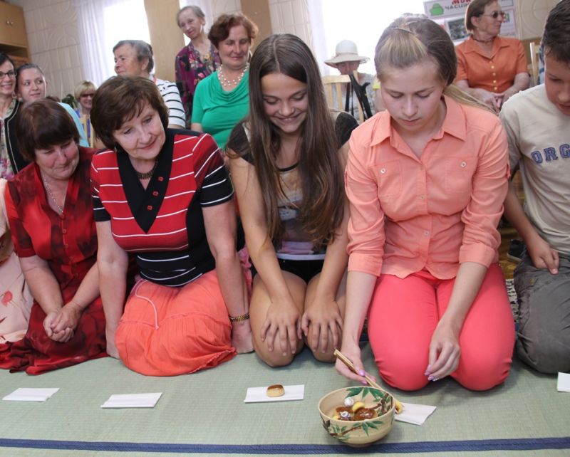 Год назад у аматарскім клубе пры цэнтральнай раённай бібліятэцы адбылася цікавая і надзвычай пазнавальная сустрэча з кіраўніком інфармацыйнага цэнтра японскай культуры ў Мінску Масака Тацумі. Тады спадарыня Масака паабяцала прыехаць у Ашмяны яшчэ раз, каб прадоўжыць аповед пра культуру і традыцыі Краіны ўзыходзячага сонца. Сваё слова шаноўная госця не толькі стрымала, але і прывезла разам з сабой сваіх родных, каб разам з імі паказаць японскую чайную цырымонію.