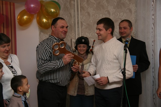 Заместитель директора ОАО «Агат-стройсервис» Александр Дрозд вручил главе семьи символический ключ от дома. Настоятель храма Воскресения Христова Пётр Петлеха и ксёндз костела Святого Архангела Михаила Ян, напутствуя новосёлов, отметили, что только в семье воспитывается тепло и доброта, а родителям-воспитателям Александру и Наталье они пожелали терпения и смирения. По традиции священнослужители освятили новый дом.