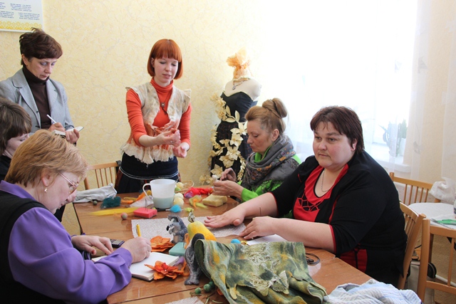 Учителя трудового обучения, начальных классов, педагоги дополнительного образования, воспитатели дошкольных учреждений района смогли посетить интереснейшие занятия у признанных мастеров. В студии по соломоплетению, которой руководила народный мастер Ирина Лелонг, педагоги постигали тонкости работы с природным материалом. Член Союза художников Беларуси Эмма Фокина, руководитель студии «Крынічка» провела мастер-класс по работе с витражными красками. Педагог дополнительного образования Ольга Кашкаревич поделилась находками в работе с вытинанкой. Особый интерес вызвала у ошмянских педагогов незнакомая для них техника работы с войлоком, с которой познакомила руководитель народной студии «Бусляня» Ольга Котова. А те, кто любит лепить из пластилина, не смогли обойти стороной народную студию фито-дизайна «Славянскі вянок», в которой Инна Шейх учила делать цветы из полимерной глины.