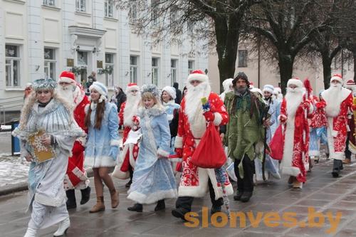 Новогодний парад сказочных персонажей «Нашествие Дедов Морозов и Снегурочек» прошел в Слониме (фото)