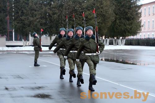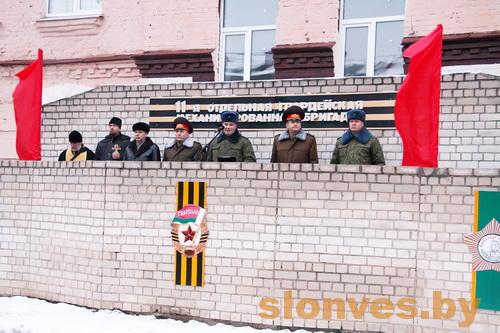 На торжественном мероприятии военнослужащих приветствовали почетные гости: министр обороны Республики Беларусь генерал-лейтенант Андрей Алексеевич Равков , председатель Слонимского райисполкома Олег Мечиславович Таргонский , председатель районного совета ветеранов Анатолий Михайлович Кудерко и благочинный Слонимского церковного округа протоиерей Вадим Петлицкий.
