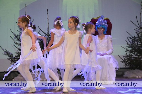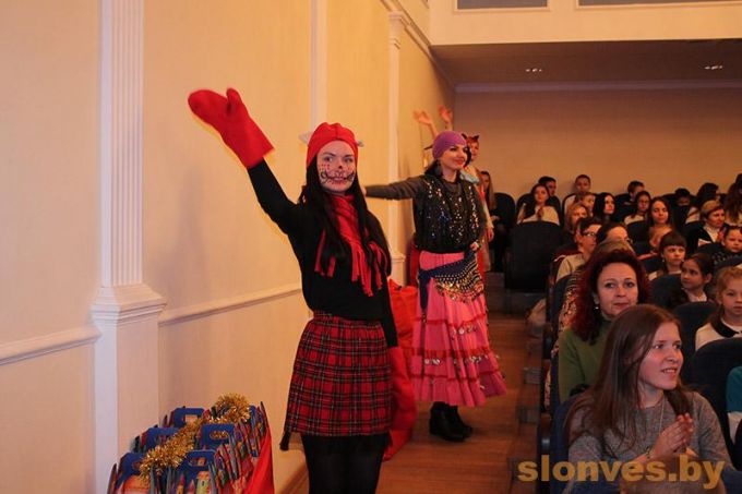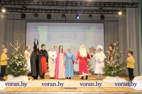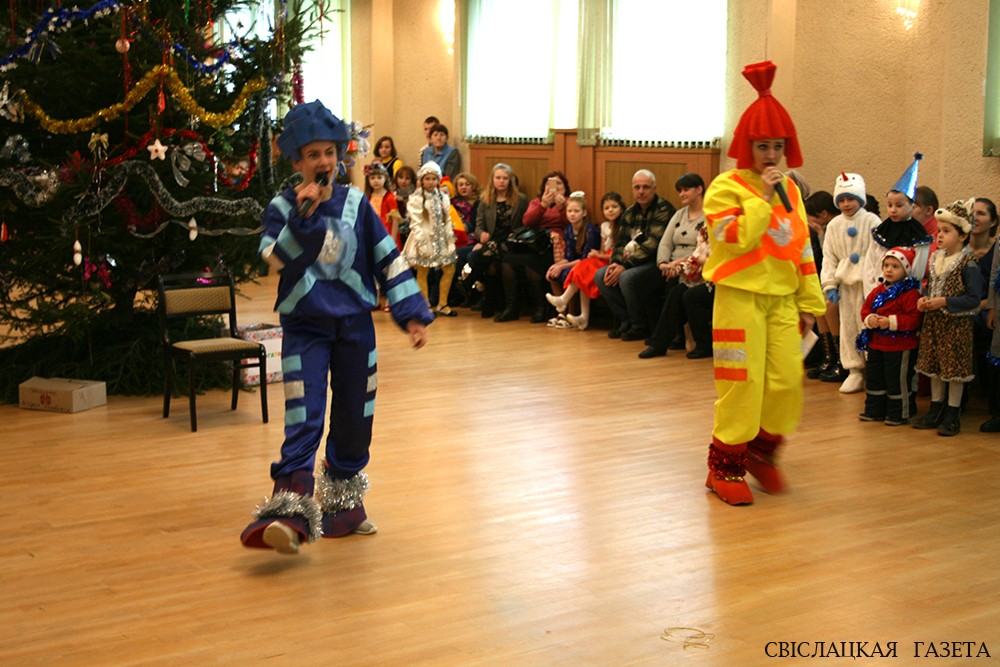 Начался утренник с новогоднего представления «Старые сказки на новый лад и на Новый год», в основу которого была положения история Золушки. Однако в новогрудской версии побывали и другие мультипликационные и сказочные персонажи и даже герои фильмов Шерлок Холмс и Фантомас. Конечно, не обошлось без Деда Мороза, Снегурочки и веселых игр прямо в зале.