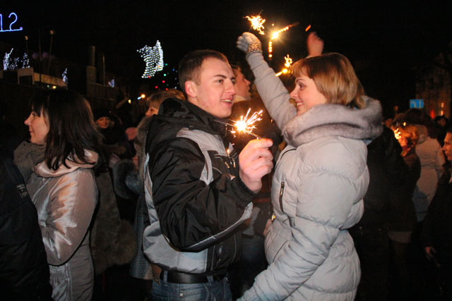 В час ночи 1 января 2012 года многие слонимчане пришли в центр к главной ёлке города. На месте народ развлекали две Снегурочки и Дед Мороз, которые вели праздничный концерт.