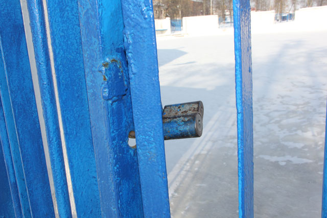 А в городском парке вообще невозможно зайти на каток не то что на коньках, а даже без них. На воротах катка висит замок.