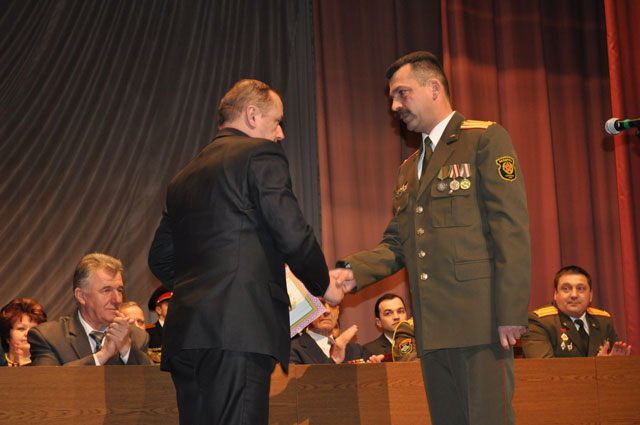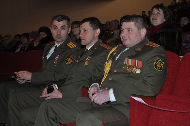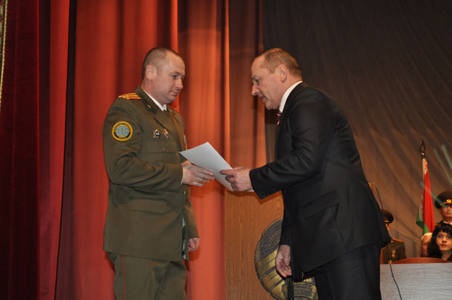 Особое внимание на собрании уделялось ветеранам. Также поздравить воинов пришли председатели Союза офицеров и Белорусского союза женщин. Много было сказано теплых слов в адрес защитников Отечества. Ряд военнослужащих получили поощрительные грамоты и дипломы за добросовестную службу.