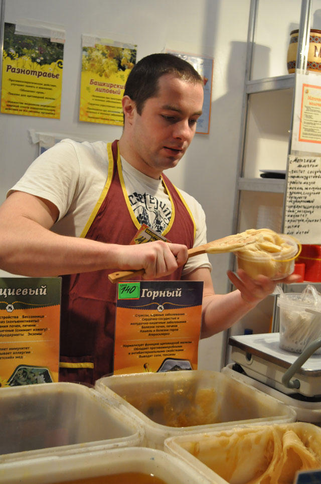 —Мёд — это наше здоровье. Например, мёд с пергой улучшает настроение и поднимает гемоглобин. Когда спортсмены идут в горы, они именно этот мёд берут с собой. А в южных странах молодожёнам дарят кубок с этим мёдом для того, чтобы у них была здоровая семья, — сказала продавец Ирина Петровна.