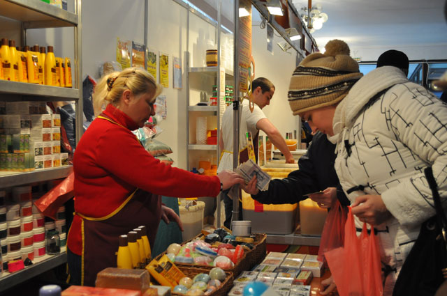 На выставке предлагается натуральный мёд и продукты пчеловодства. А также здесь представлены бальзамы, косметика на натуральной основе, глицериновое мыло ручной работы, в большом ассортименте травы, которые поддерживают здоровье человека, и одежда из собачьей и верблюжьей шерсти.