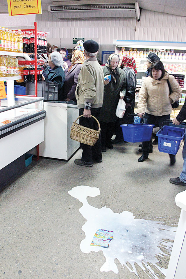 Пенсионерка Анна Николаевна, которая стояла почти в конце очереди, переживая, хватит ли ей молока, часто вслух повторяла: «Когда этот бардак закончится?»
