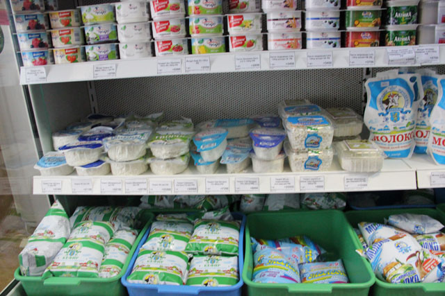 —Сегодня я получила три ящика дорогого молока. 2,9%-ное стоит 2000 рублей, его дали два ящика, и 1,6%-ное, которое стоит 1450 рублей, — один ящик. Что касается творога 3%-го, то нам на магазин даёт всего 10 пачек. Дешевый творог стоит 2200 рублей, 10%-й — 6750 рублей, 5%-й привозной — 2450 рублей. Вообще нам молочный завод дает все по заявке. Дорогого я сама заказываю 10 пачек, потому как больше я его не продам. Что касается сметаны, то сегодня мне дали пять пачек дорогой и пять пачек дешевой сметаны. Дело в том, что мы сначала даем заявку на дорогую продукцию, а молокозавод, исходя из этого, поставляет нам дешевую продукцию на свое усмотрение.