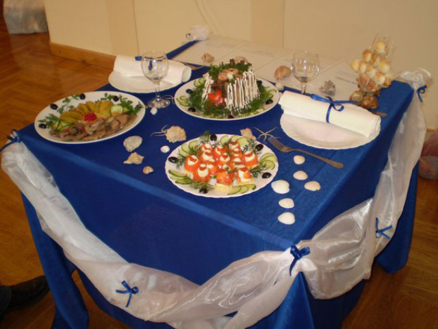 Праздничный стол Павел оформил в морском стиле