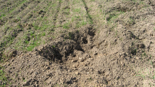 Множество следов на изрытой земле также показывают, что кабаны находят лазейки на территорию загороженного участка.