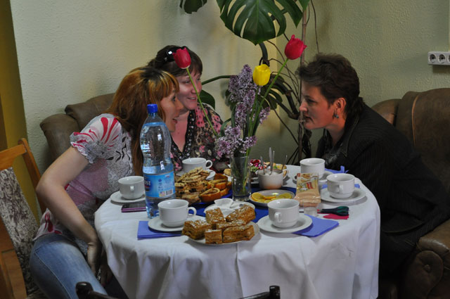 В конце вечера были показаны слайды со словами о любви. На протяжении всего праздника царила дружеская атмосфера, где семейные пары делились опытом за чашкой чая.