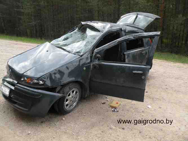 При движении со стороны деревни Полонка Барановичского района в направлении Слонима два молодых парня в результате опрокидывания автомобиля «Фиат» получили ранения и переломы.