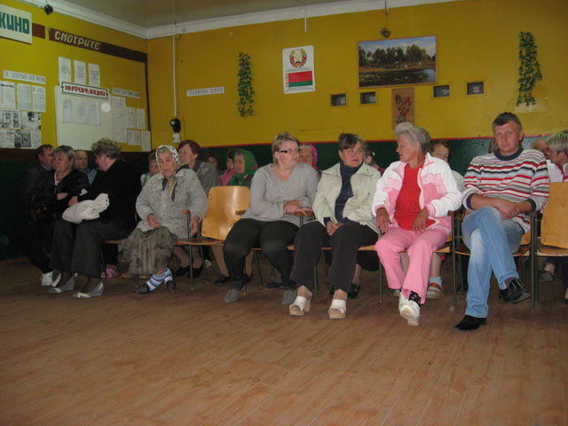 Сход быў прызначаны на 17 гадзін, калі шмат хто з вяскоўцаў яшчэ не вярнуўся з працы. Таму з боку жыхароў вёскі прысутнічала ўсяго каля 40 чалавек, збольшага пенсіянеры. Яны адразу заўпарціліся: