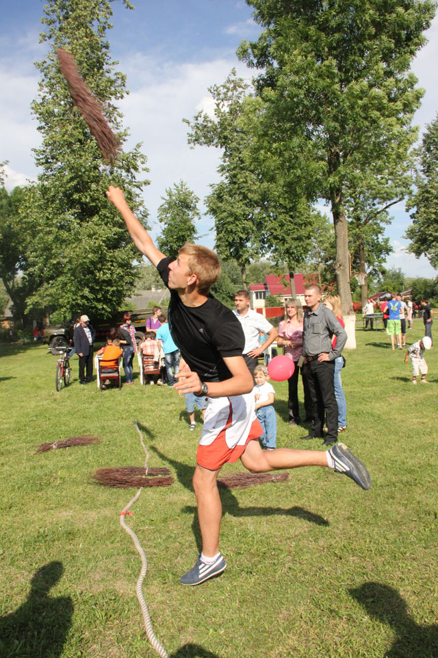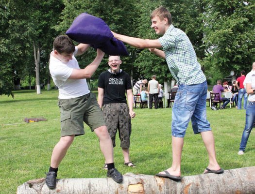 В парке проходили бои поду-шками и метание метелок на дальность. Были организованы и другие развлекательные спортивные конкурсы. Многие не проходили мимо стенда с названием «Забей на алкоголь». Принявшие участие в этой акции забивали молотком гвоздь в картинку с изображением бутылок со спиртными напитками. Пригвоздил бутылку с алкоголем и заместитель председателя райисполкома Сергей Юшкевич.