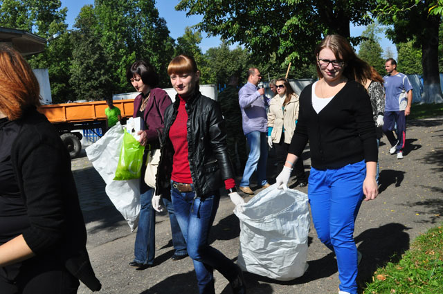 Ребята пришли в соответствующей одежде, получили инвентарь и отправились собирать мусор.