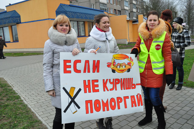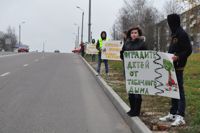 22 учащихся выставили на проспекте Независимости пикеты с плакатами, которые призывали автолюбителей и прохожих отказаться от пагубной привычки.