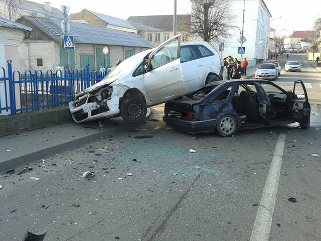 По информации портала TUT.BY, в прошлое воскресенье, 2 декабря, около 14.00 на перекрестке улиц Оперная и Советская в Слониме произошла авария, в результате которой автомобиль «Опель» заскочил на крышу «Форда».