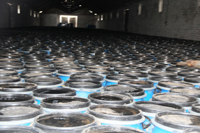Несколько недель назад корреспонденту удалось побывать в деревне Мизгири, где временно хранятся яды. Предупреждающих знаков о том, что на территории находятся смертельные яды, нигде не было. Более того, удалось даже приблизиться к складу с тыльной стороны, преодолев метров четыреста полем. Склад, где хранятся яды, полностью набит бочками. Поэтому их стали складировать в несколько ярусов прямо на открытой территории рядом со складом. Правда, недалеко от самого склада стоит вагончик, в котором несут дежурство сотрудники немецкой компании Sava, непосредственно занимающейся отгрузкой пестицидов в Германию.